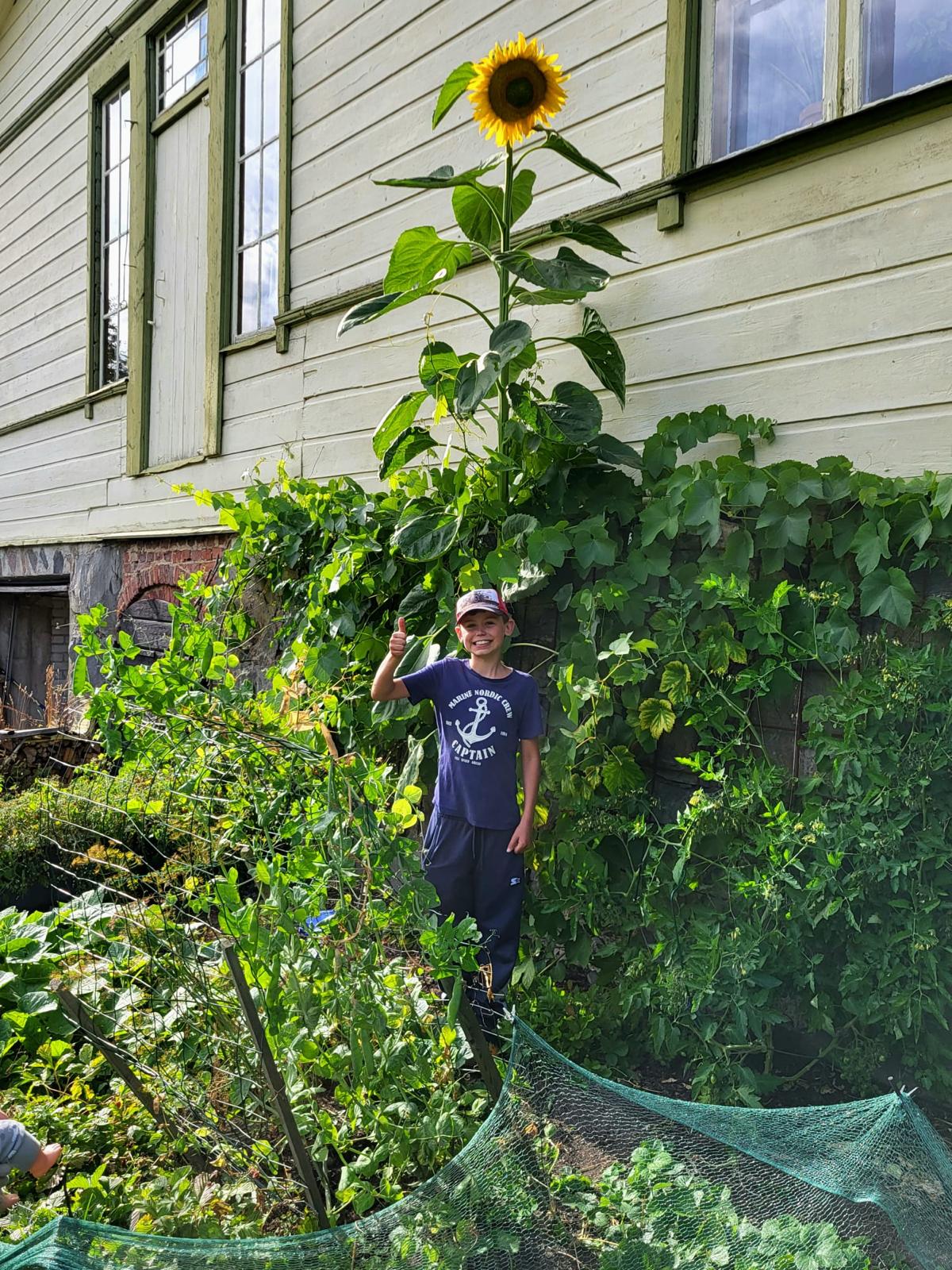 – Trots en sommar fylld av omväxlande väderförhållanden har Elias med stor omsorg skött sina solrosor på gården. Han har dessutom några hemliga odlingstrick som gynnat tillväxten. Hela familjens odlingsintresse märks tydligt i Elias engagemang.