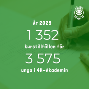 4H spelar en central roll i att stärka ungas färdigheter och första möjligheter i arbetslivet. Genom kurser, praktik och arbetslivsträning får unga värdefulla erfarenheter. Under 2025 ordnades totalt 1 352 kurstillfällen med 3 575 deltagare – en ökning med 19 respektive 17 procent.